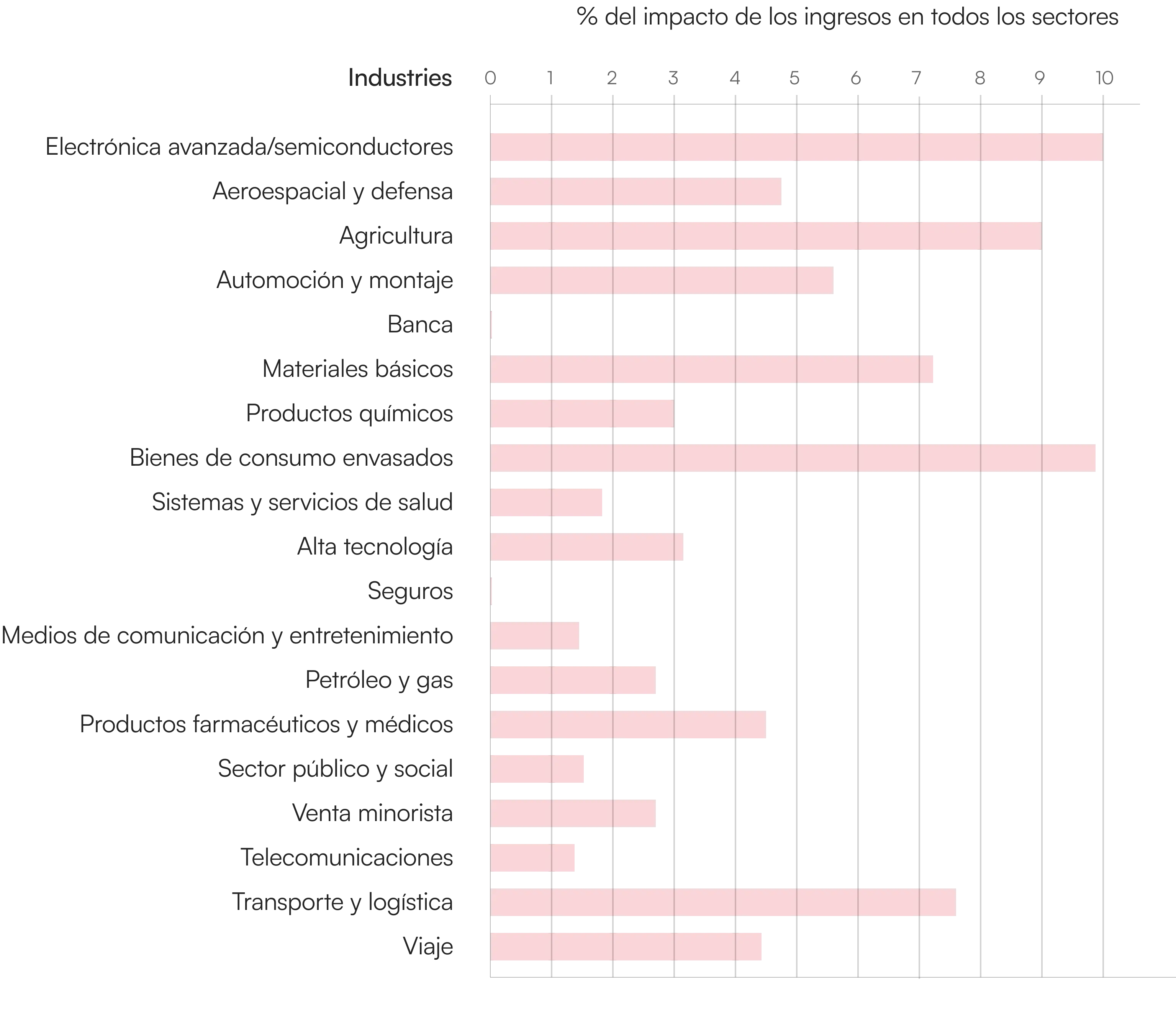 % of impact of revenue across the industries